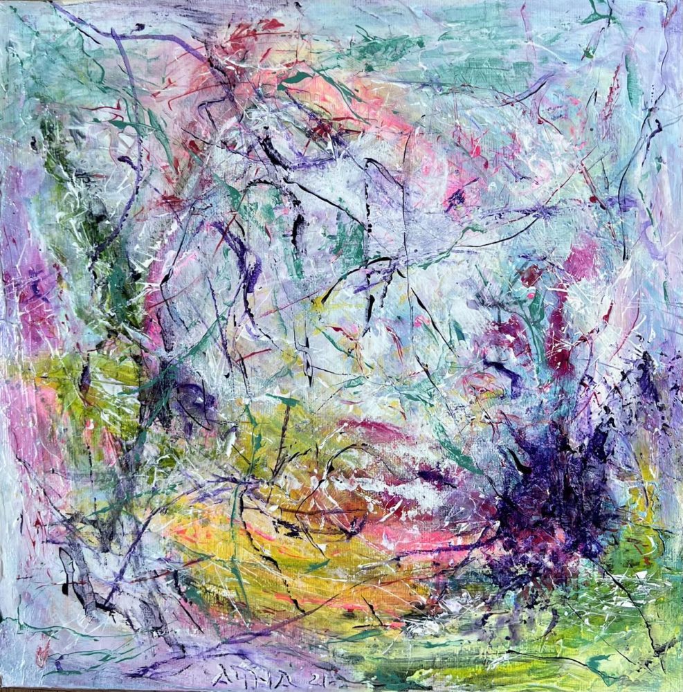The painting reflects spontaneity and experimentation. Each layer adds depth, while saturated tones and dynamic marks create movement and harmony. Its square format and compact size make it easy to adapt to modern interiors. Display it alone or pair it with other works from the series for a cohesive look.